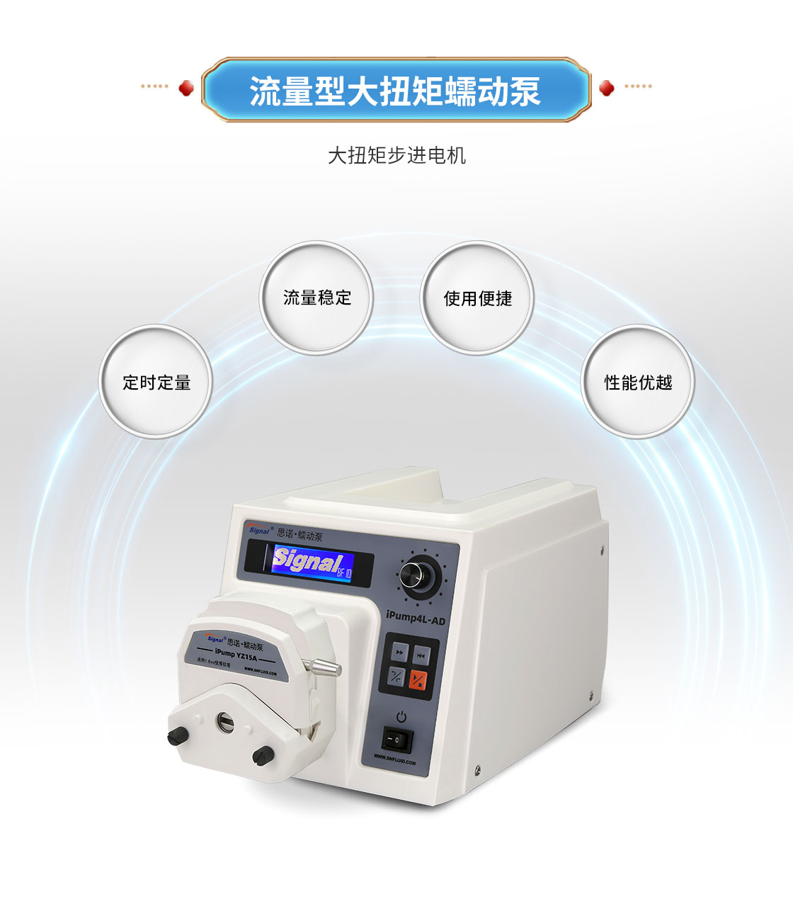 2.大扭矩步進電機驅動,適合多泵頭串聯使用;
