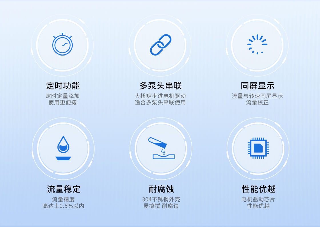 2.大扭矩步進(jìn)電機(jī)驅(qū)動,適合多泵頭串聯(lián)使用;